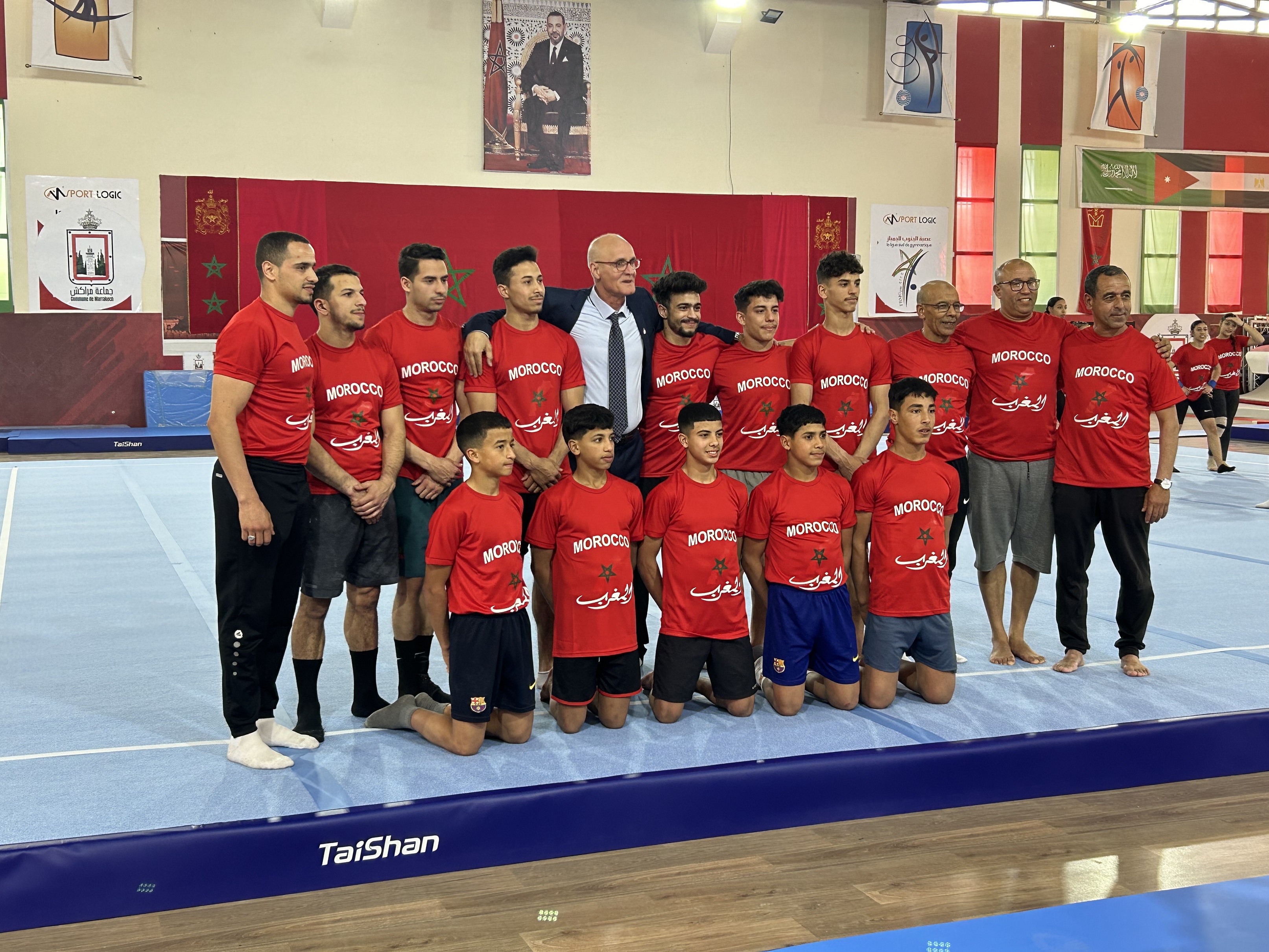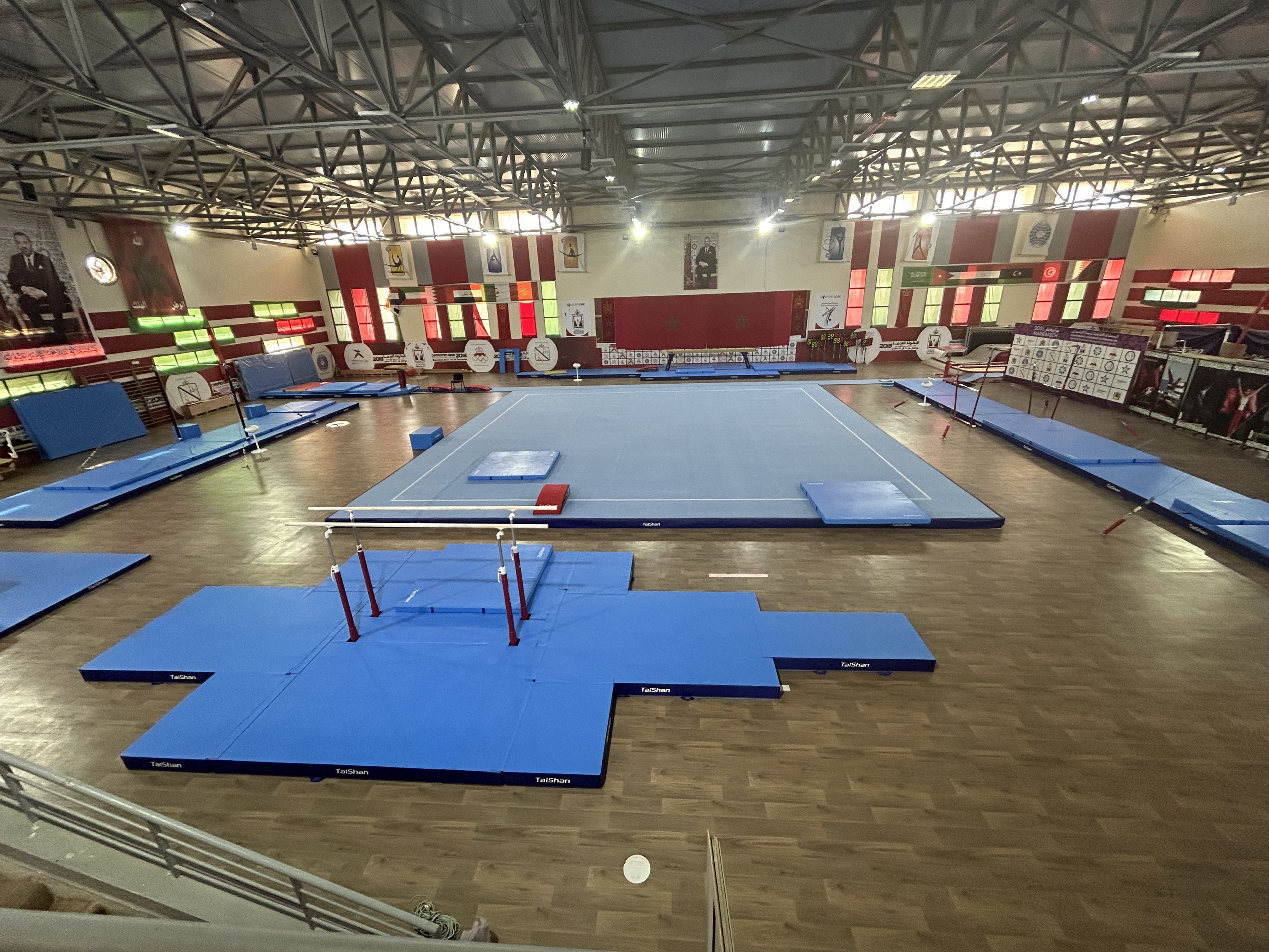 In order to ensure the excellent performance of gymnasts, Taishan Sports’ professional service team went to Marrakech to prepare for the installation and debugging of the competition venues.