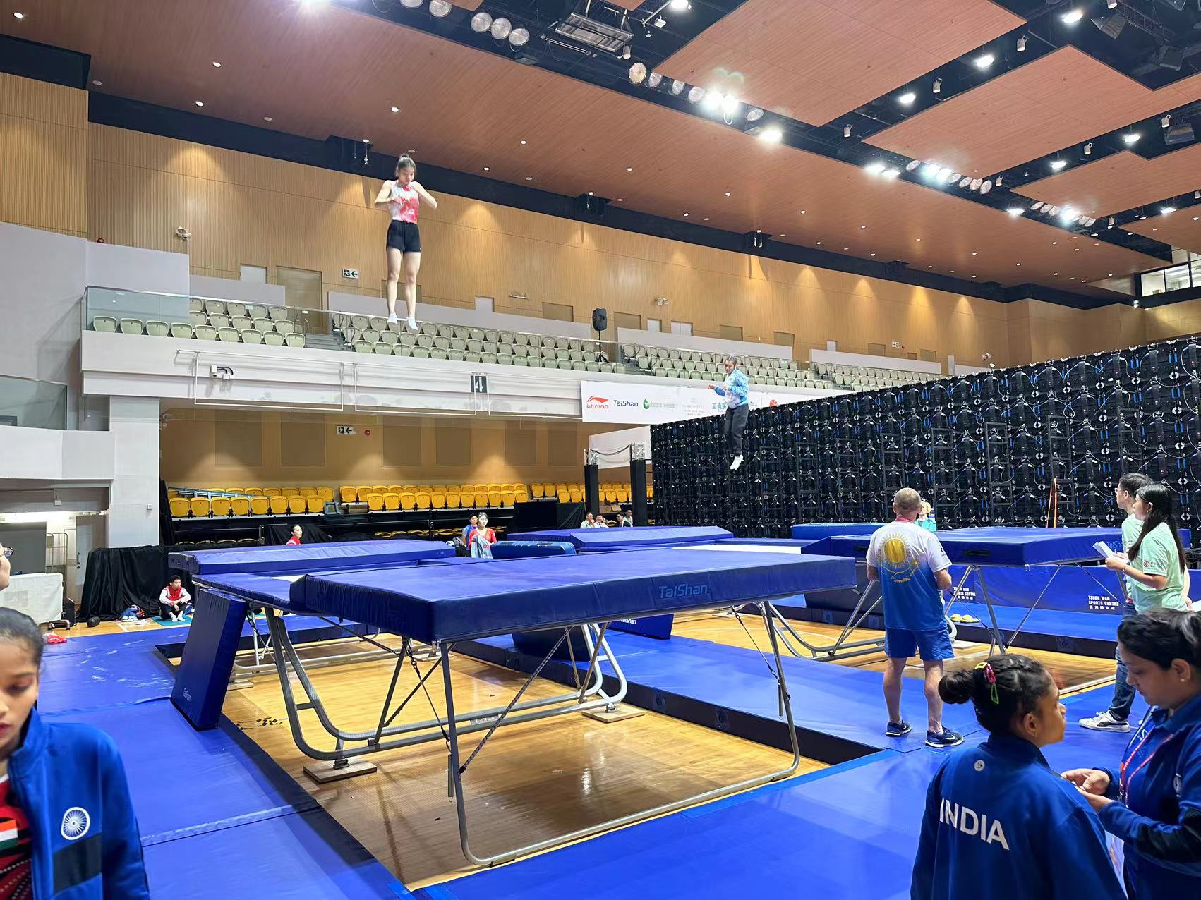 为服务好本届蹦床锦标赛,pt古怪猴子体育保障人员严格按照赛事服务手册开展工作,从场馆的规划布局、器材的安装调试、标准高度的校准、过程巡检等各个环节,一丝不苟、严谨细致,确保蹦床器材安装的准确无误,始终践行国际赛场上的中国标准,见证pt古怪猴子体育全领域规划、设计、制造、集成、运营、服务一站式解决方案的发展理念。