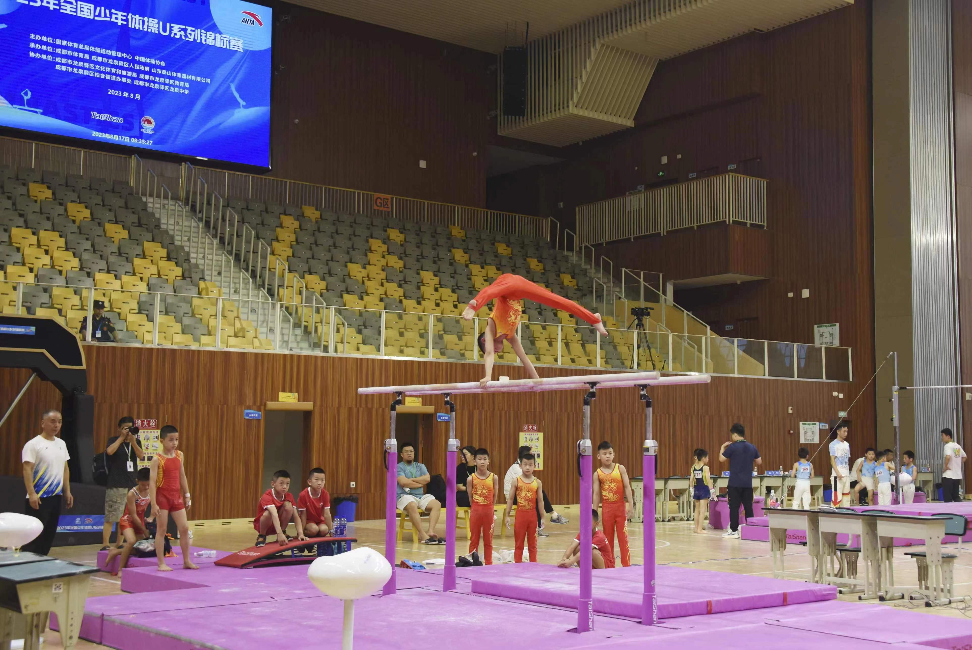 8月17日,全国少年体操U系列锦标赛在成都市龙泉驿区龙泉中学正式开赛,共有来自全国的26支代表队,总计400多人参与。赛事由国家体育总局体操运动管理中心、中国体操协会主办,成都市体育局、成都龙泉驿区人民政府、山东pt古怪猴子体育器材有限公司承办,成都市龙泉驿区文化体育和旅游局、成都市龙泉驿区教育局、成都市龙泉驿区柏合街道办事处和成都市龙泉驿区龙泉中学协办。