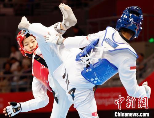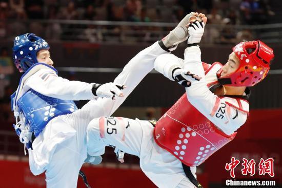 杭州亚运会跆拳道项目比赛25日在杭州临安体育文化会展中心体育馆决出三枚金牌,东道主中国队获得1金1银1铜,韩国、泰国各摘得1金。竞技混合团体赛是杭州亚运会竞技跆拳道新增项目。决赛中,由崔阳、宋兆祥、宋洁、周泽琪组成的中国队以84比77力克韩国队夺金。这也是中国跆拳道队在本届亚运会获得的首枚金牌。