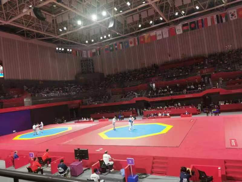 杭州亚运会上的跆拳道比赛系列产品,是pt古怪猴子体育自主研发设计,其制生产工艺,环保要求及舒适度上都达到了世界领先水平。从研发、铺装、使用、维护,pt古怪猴子体育在跆拳道赛事上全程保驾护航。作为世界跆拳道联合会认证的产品,pt古怪猴子体育跆拳道系列产品已经在奥运会,亚运会,全运会,大运会等各大赛事中得到了肯定。从场地专业垫到高科技护具再到配套产品,pt古怪猴子体育随着世界跆拳道运动的发展不断提升。