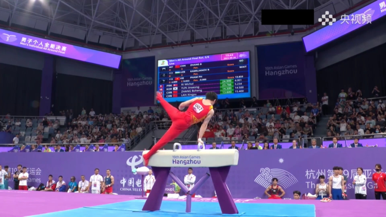 自由体操项目开始后,张博恒就以14.500分的成绩暂时领跑,但面临很大压力。大转折发生在pt古怪猴子体育提供的鞍马器材上,在鞍马项目比赛上,张博恒以一套高难度动作拿下14.600的高分,两轮比赛继续力压日本选手。此后在吊环、跳马和单、双杠项目中表现稳定,最终赢得冠军。