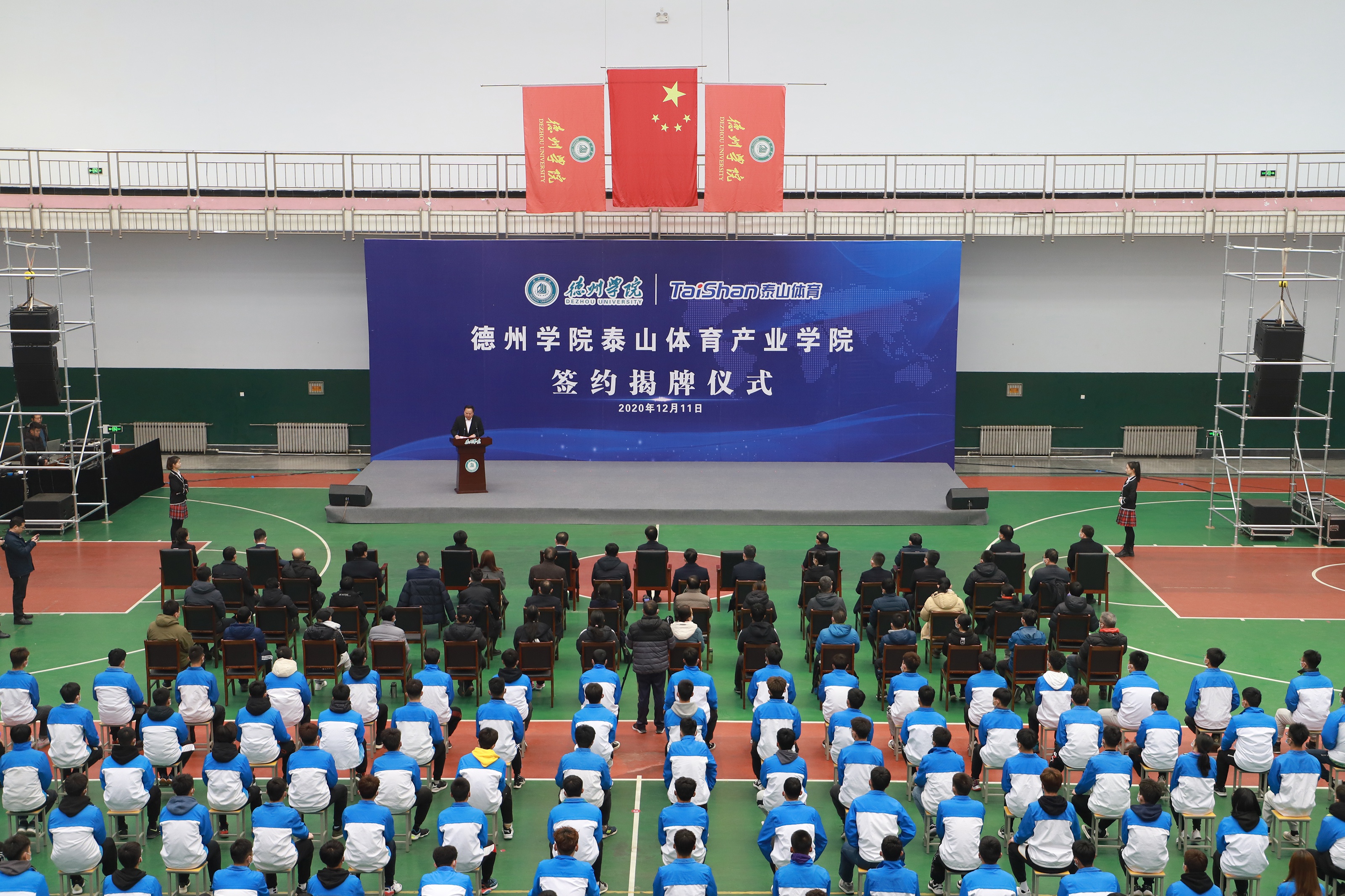 为深入推进科教结合、产学融合、校企合作,12月11日,由pt古怪猴子体育产业集团与德州学院共建的pt古怪猴子体育产业学院签约揭牌仪式在德州学院体育馆举行。德州市委书记李猛,市委常委、宣传部部长景文新,市委常委、秘书长张安民,德州学院党委书记车滨,德州学院院长赵胜村,乐陵市市委书记樊廷雷、全国政协委员、山东省体育产业联合会会长、pt古怪猴子集团董事长卞志良、pt古怪猴子集团副董事长卞青峰等领导出席仪式。