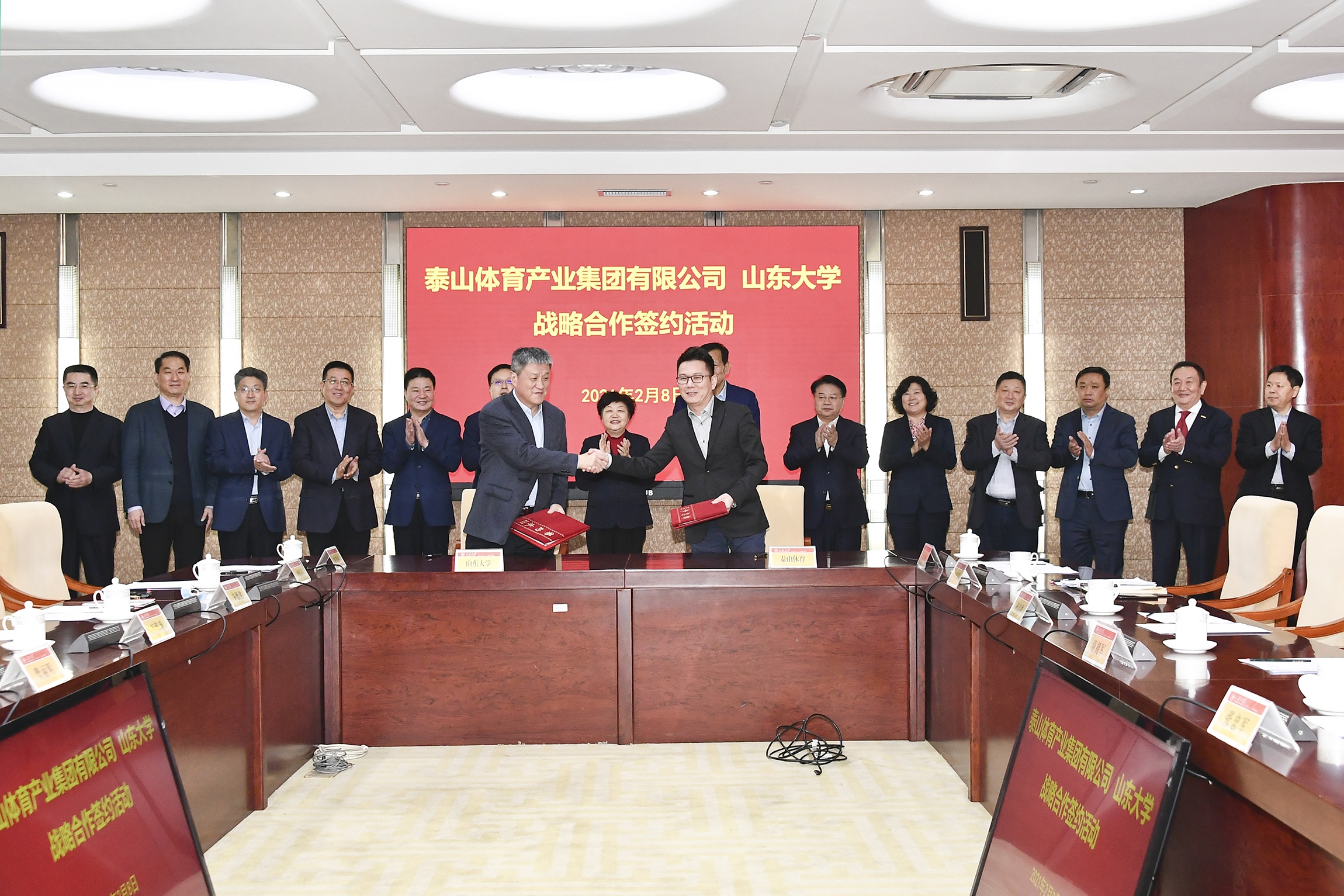 为积极建设“体育强国”、“健康中国”、“健康山东”,努力实现产教融合与产学研深入合作,2021年2月8日,pt古怪猴子体育产业集团与山东大学战略合作签约仪式在山东大学中心校区隆重举行。山东省体育局党组成员、省体育总会专职常务副主席隋拥军,山东省工信厅二级巡视员张忠军,山东省科技厅总工程师孙高祚,省体育局体育产业发展服务中心主任翟培建,山东省科技厅张大瑞,德州市副市长马俊昀,乐陵市委副书记、市长陈光春,山东大学党委副书记、校长樊丽明,全国政协委员、pt古怪猴子体育产业集团有限公司董事长卞志良等领导出席仪式。签约仪式由山东大学党委副书记王君松主持。