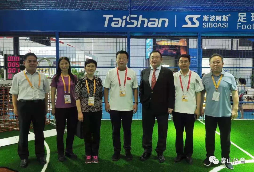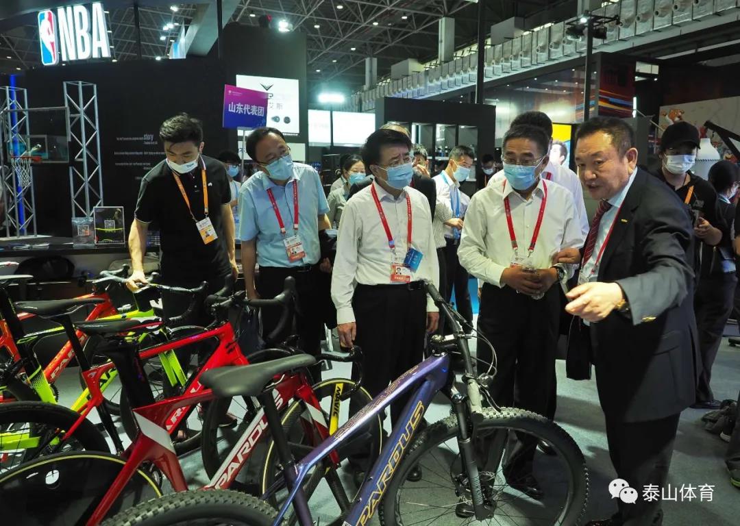 山东省商务厅厅长张德平在pt古怪猴子体育产业集团董事长卞志良陪同下参观一号馆pt古怪猴子体育展厅。