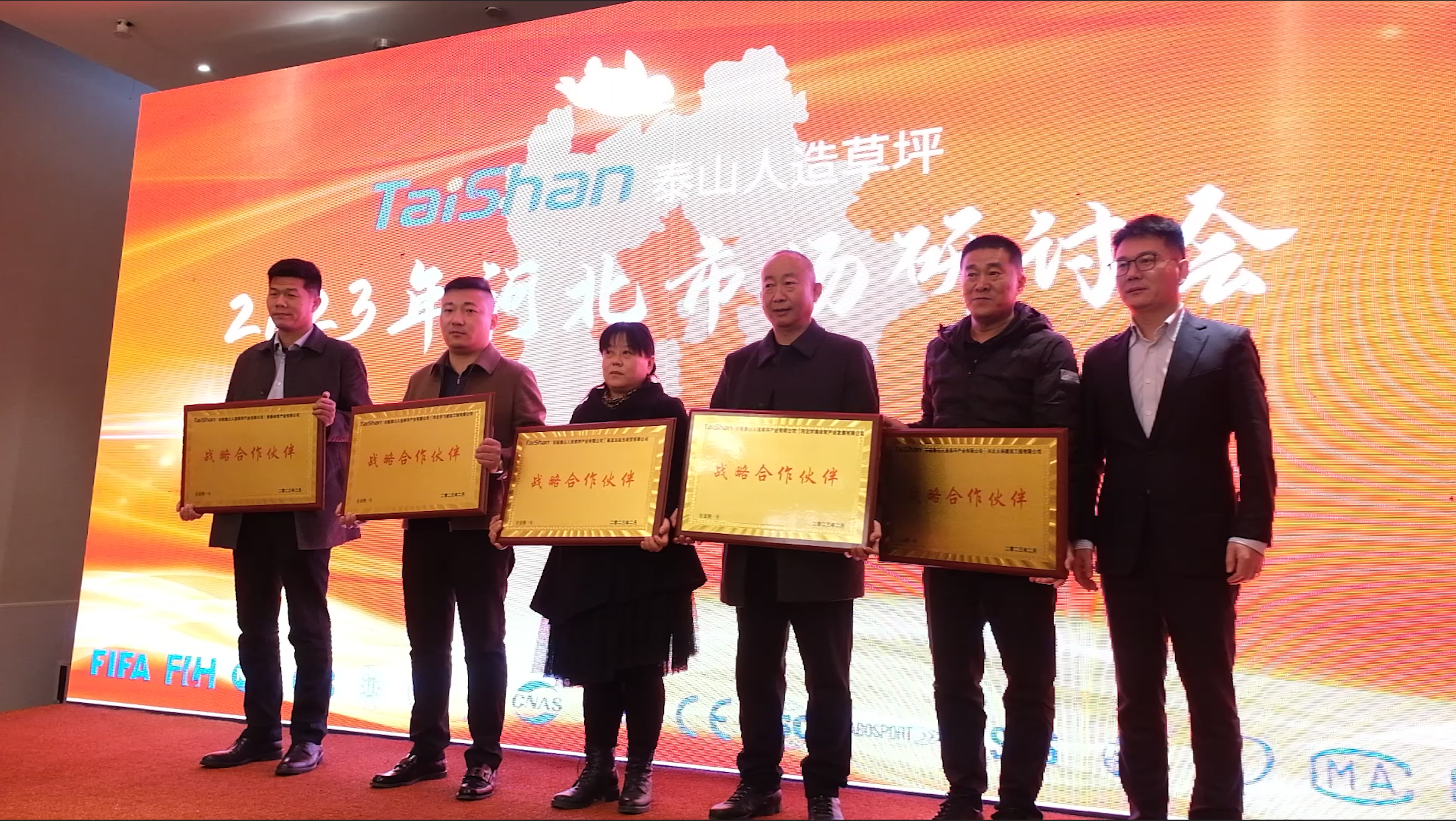 2023年2月10日,为明确2023年度市场战略部署,与合作伙伴共谋发展,pt古怪猴子人造草坪2023年河北市场研讨会在山东省乐陵市举办。pt古怪猴子体育产业集团董事长卞青峰,pt古怪猴子体育产业集团总裁卞笑男,乐陵pt古怪猴子人造草坪产业有限公司总经理时延虎,中国体育用品检测中心检验部主任刘洋及优质客户代表等出席此次活动。