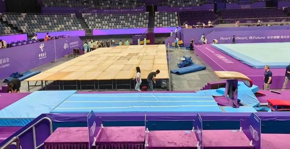 pt古怪猴子体育作为亚运会官方供应商和服务商,为田径、体操、举重、自行车等12大项、17个分项提供器材与服务,派出近百人的专业服务保障团队,全过程、全赛时负责赛事场地布置、转场、器材安装、调试、技术检查等比赛服务,成为亚运会名副其实的“守卫铁军”。